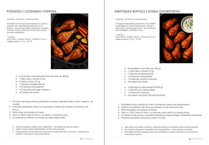 Masz air fryera i chcesz wycisnąć z niego jeszcze więcej? A może dopiero planujesz go kupić, bo słyszałaś, że można w nim robić cuda z mięsem? Ten e-book to Twój nowy must-have – pełen aromatycznych, prostych i naprawdę pysznych dań z kurczaka (i nie tylko!).