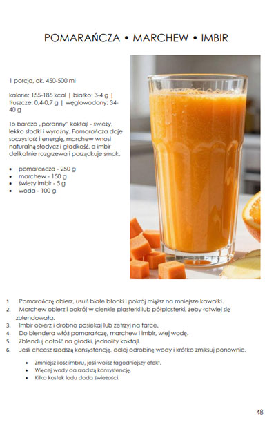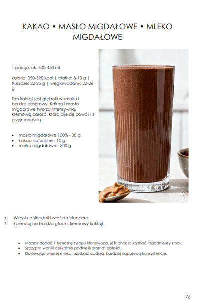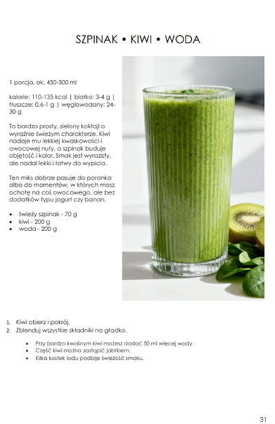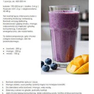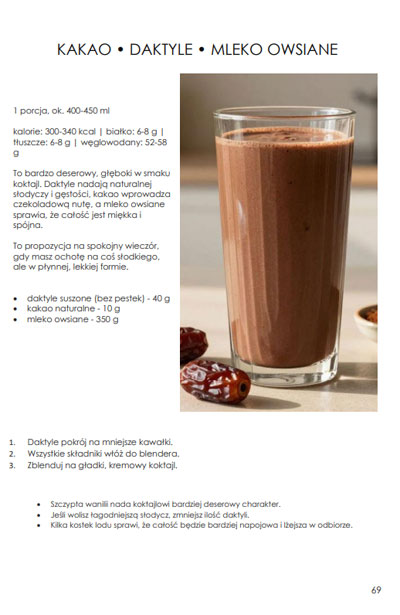 Każdy przepis zawiera wartości odżywcze podane w widełkach, co ułatwia dopasowanie koktajlu do własnych potrzeb.