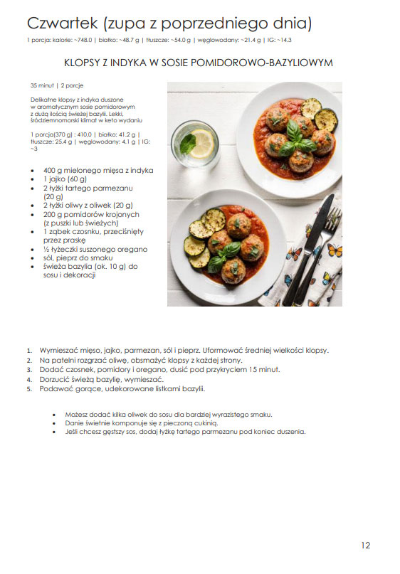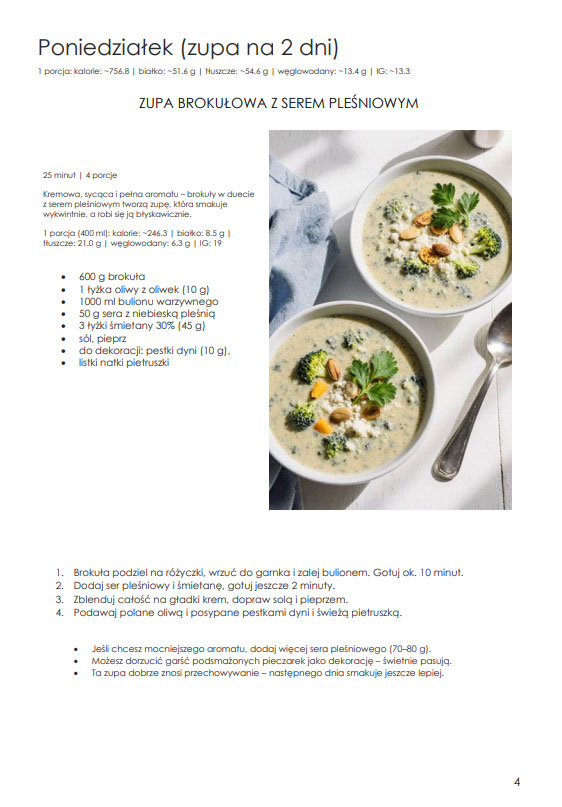Jego przygotowanie wymaga dużej wiedzy, liczenia, sprawdzania i pilnowania detali – to praca czasochłonna i wymagająca uwagi. Właśnie dlatego korzystanie z planu jest tak proste. Cała trudna część została wykonana wcześniej, a Ty możesz skupić się na tym, co najprzyjemniejsze: gotowaniu i jedzeniu. Bez chaosu, bez improwizacji i bez zmęczenia.