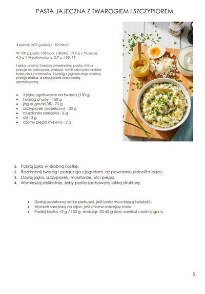 Pasta jajeczna z twarogiem i szczypiorem, Pasta z tuńczyka, jogurtu i ogórka kiszonego, Pasta z pieczoną papryką, twarogiem i czosnkiem, Pasta z wędzonego łososia, skyru i koperku, Pasta z kurczaka, jogurtu i musztardy, Pasta twarogowo-ziołowa z czosnkiem, Pasta twarogowo-ogórkowa ze skyrem i koperkiem, Pasta z twarogu, wędzonej makreli i koperku, Pasta z wędzonego łososia, świeżego ogórka i koperku, Pasta sardynkowa z cytryną i pietruszką, Pasta z indyka, skyru i koperku, Pasta z pieczonych warzyw, jogurtu i ziół, Pasta z tofu, jogurtu i czosnku, Pasta z pieczonego kurczaka BBQ, Pasta z wędzonego indyka, Pasta z szynki, twarogu i chrzanu, Pasta z mięsa rosołowego (zero waste), Pasta z białej fasoli, cytryny i natki, Pasta z czerwonej soczewicy i tahini, Pasta z ciecierzycy high-protein (nie hummus), Pasta tofu high-protein z pietruszką, Pasta z tuńczyka i serka śmietankowego, Pasta z ricotty, skyru i bazylii, Pasta z Serkiem wiejskim, ogórkiem i koperkiem, Pasta z Serkiem wiejskim, jajkiem i musztardą, Pasta z pieczonej dyni, tofu i szałwii, Pasta z wędzonego pstrąga i skyru, Pasta z halloumi i pieczonej papryki, Pasta jajeczna ze skyrem i curry, Pasta z fasoli, pieczonego czosnku i chili, Pasta z fety, pieczonym bakłażanem i ziołami, Pasta z cukinii i fety, Pasta z fety, pieczonej papryki i oliwy.